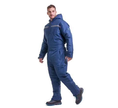 Confeccionado en tela oxford 210 color azul. Interior napa aislante y forro nylon. Exterior: Posee 2 bolsillos inferiores y uno superior. Aplicaciones de cinta reflectiva en espalda y pecho.